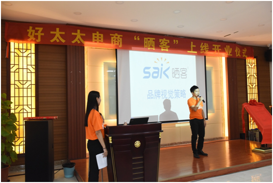 会议上,广东好太太电商中心运营组长张杰先生对晒客品牌视觉策略进行讲解,saik的logo极具创造性,saik中的「i」上的图形寓意阳光,整体采用科技感的湖蓝色调,代表着晒客年轻、时尚、智能、科技的品牌调性,晒客只有一个原则:至繁归于至简。