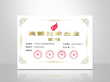 更连续3次获得由广东省科学技术厅、广东省财政厅、广东省国家税务局、广东省地方税务局四单位授予的“高新技术企业”称号。