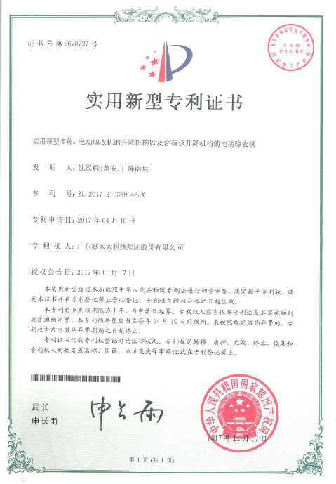 好太太GW-181 智尊系列不仅功能超强,承重力也超乎想象,除了能一次挂满我带回来的大量衣服,再加上全家人的衣服、被子一起晾晒也毫无压力。原来机身藏着好太太自主研发的动力系统,有专利技术认证,产品品质有保障。