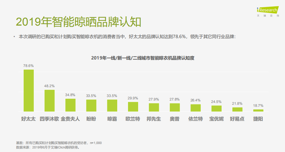 报告数据公开可知,好太太的品牌认知度更是达到78.6%,且调研的已购买和正在使用智能晾衣机的消费者当中,近6成购买过好太太的智能晾衣机,他们对目前所使用产品的满意度最高达到 97.3%。数据背后体现的是,所有品牌晾晒市场都不及好太太一家的体量大,好太太在业内占不仅是“大牌子”,而是“超级大牌”。