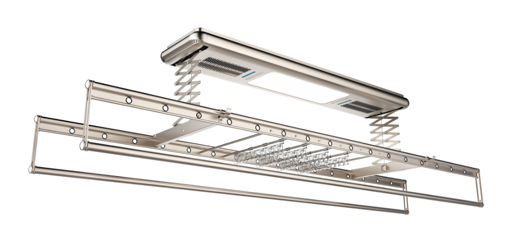 好太太智能晾衣机集照明、风干、烘干、消毒杀菌等功能为一体,拥有4核强劲风力,超大风量,在阴雨天气下也能吹干。并且搭载着600W双核PTC陶瓷发热,高效烘干衣物,恒温不伤衣物,并且吹干烘干后会自动关闭,节能省电,对于当代社会懒癌患者简直是量身定做。再加之搭配新品被褥拍打护理仪,晾被再也不用人工进行拍打,科学健康更加简便。