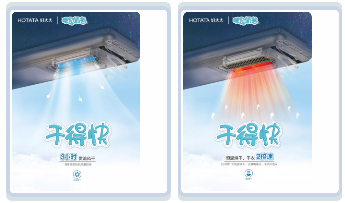好太太奶爸机,自带一键风干/烘干功能,在秋冬天气晾晒也不糟心,PTC恒温陶瓷,不伤衣,一键即可烘干衣物。