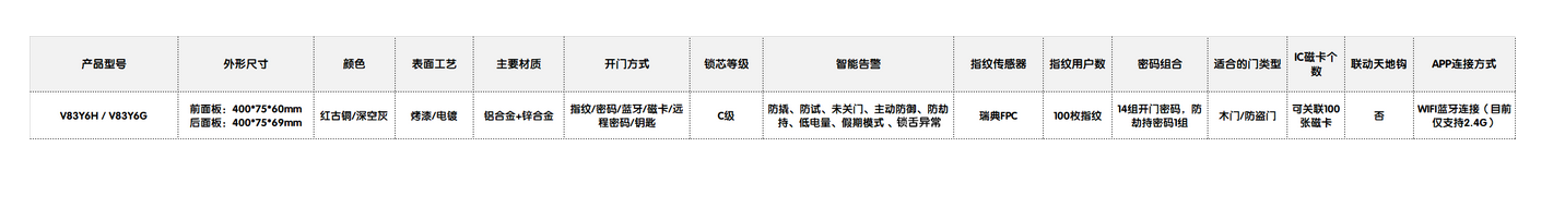 好太太全自动智能锁V83。它采用瑞典FPC指纹传感器,HIEYIE指纹算法,生物指纹识别技术,指纹+电容+体温三合一,不仅可有效拒绝各种假指纹,更可有效提升真指纹解锁速度,带来极速开关门体验。