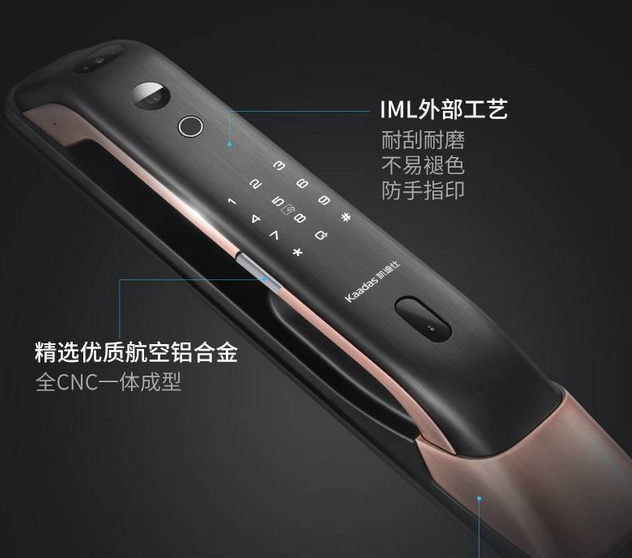 采用弧面流线设计,航空铝材耐磨防刮,融入极简现代美学,一体流线型外观,圆弧把手握感舒适。具有指纹开启、密码开启、远程授权临时密码开启、机械钥匙开启、双重组合验证开启5种开锁方式。采用一体推拉室内感应固定把手,内置传感器,一握自动开,天然防猫眼。