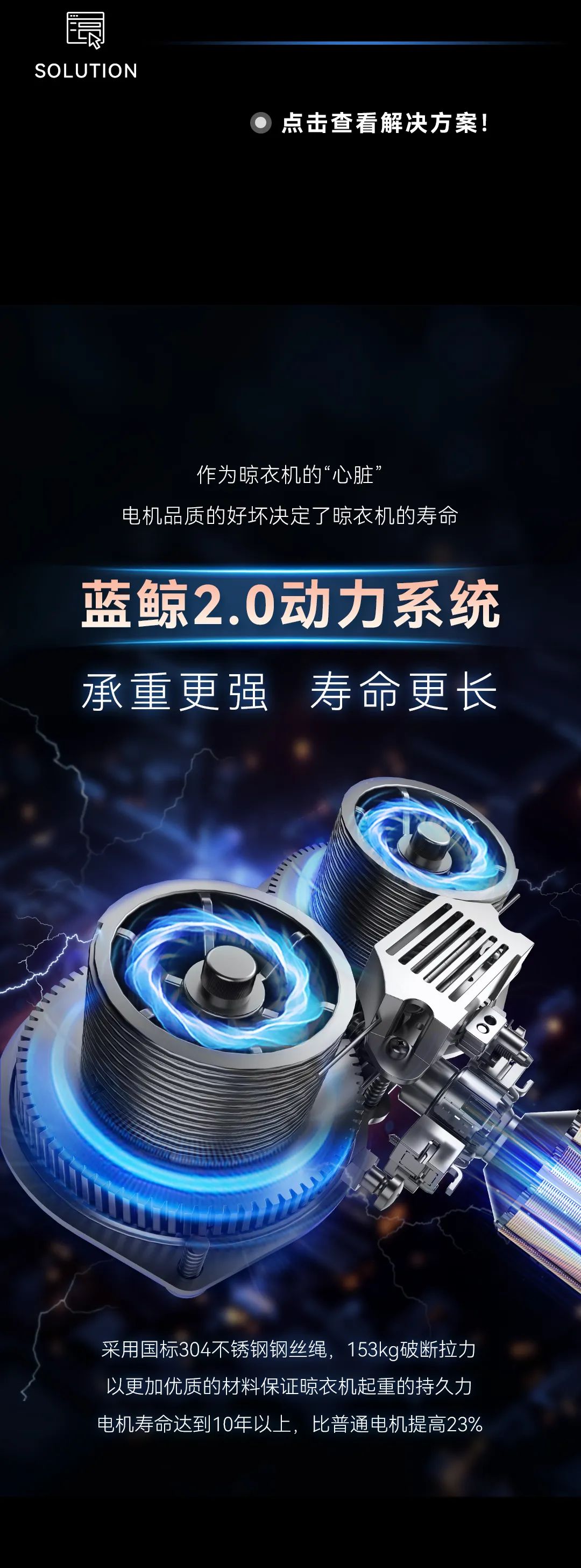 VSPORTS胜利因您更精彩智能晾衣机性能突破:蓝鲸2.0动力系统,承重更强,寿命更长