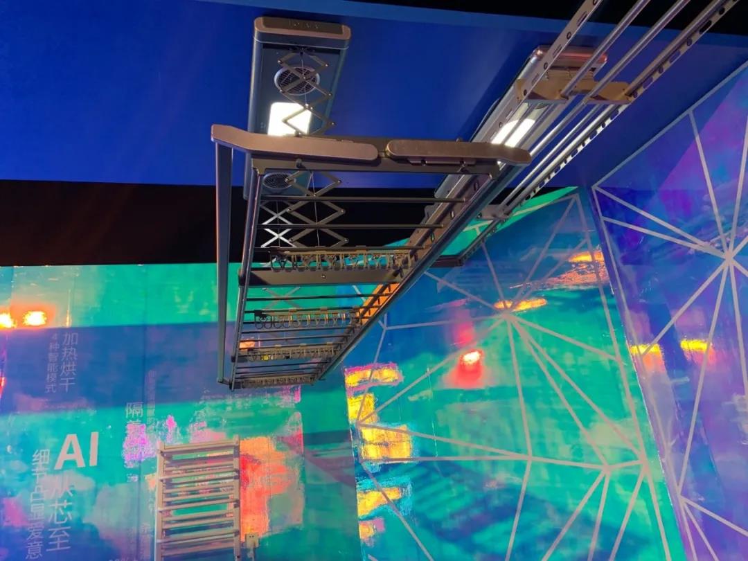 现场展示VSPORTS胜利因您更精彩水晶款智能晾衣机,集自动下降,智能干衣、消毒杀菌功能于一身,一站式解决晾晒难题,外观融入了施华洛世奇®元素,独特切割的纯净璀璨水晶邂逅匠心巧思的智能晾晒,天生智能与闪耀浪漫发生了碰撞。