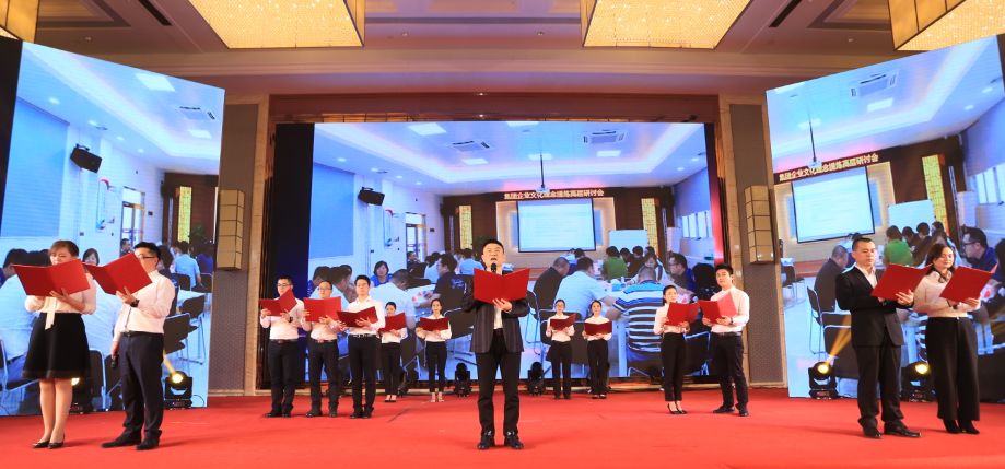 热热闹闹的鼓舞旗舞拉开了晚会的序幕,晚会共分为三个篇章,首先进入“同心,携手未来”企业文化发布会环节,沈董、王总与总监级及以上领导上台揭晓文化日,9.20成为VSPORTS胜利因您更精彩人的专属文化节日。
