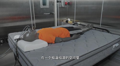 在散热性对比实验中,顾家家居委托第三方实验室进行实验,在恒温恒湿的空间里放置身上带有传感器的暖体假人模拟睡眠状态,观察90分钟之内假人身体各部位的皮肤温度变化。最终结果显示,顾家床垫的表面温度始终保持在33.8°C,具有更强的散热性。