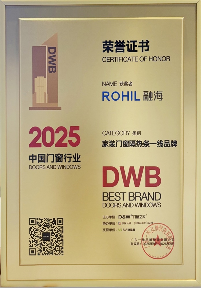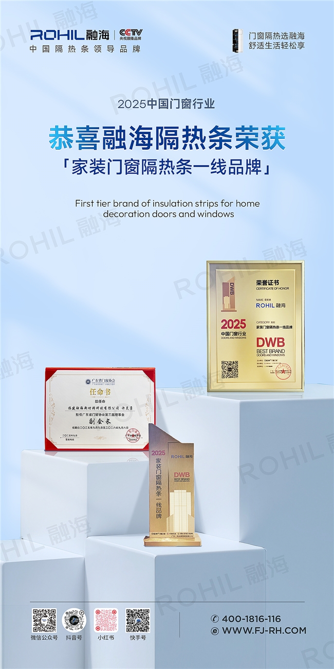 此次“一线品牌”的授予,是对融海隔热条多年深耕行业的权威认可!从材料研发到生产工艺,从产品性能到市场口碑,融海始终以高标准要求自身,为门窗行业提供高品质、高可靠性的隔热解决方案。
