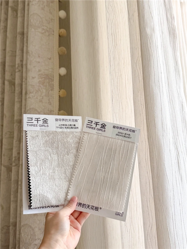 三千金给用户准备了丰富又有质感的小样,涵盖了多种风格、面料和纱帘组合。这些小样颜色耐看不突兀,材质上手就能感受到高级感,用户可以直接在家里的光线下比对各款效果,轻松搭配出自己想要的方案。更重要的是,他们的客服团队很懂搭配,能根据房屋朝向、空间大小和已有的软装给出具体建议,大大缩短了用户犹豫的时间。